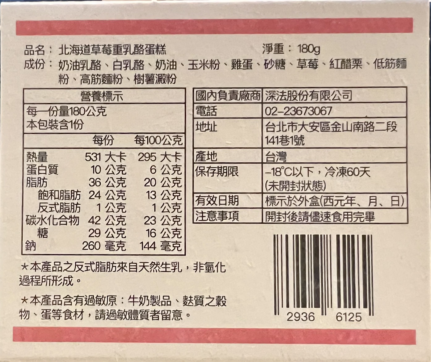 🍓 北海道草莓重乳酪蛋糕(冬季限定)