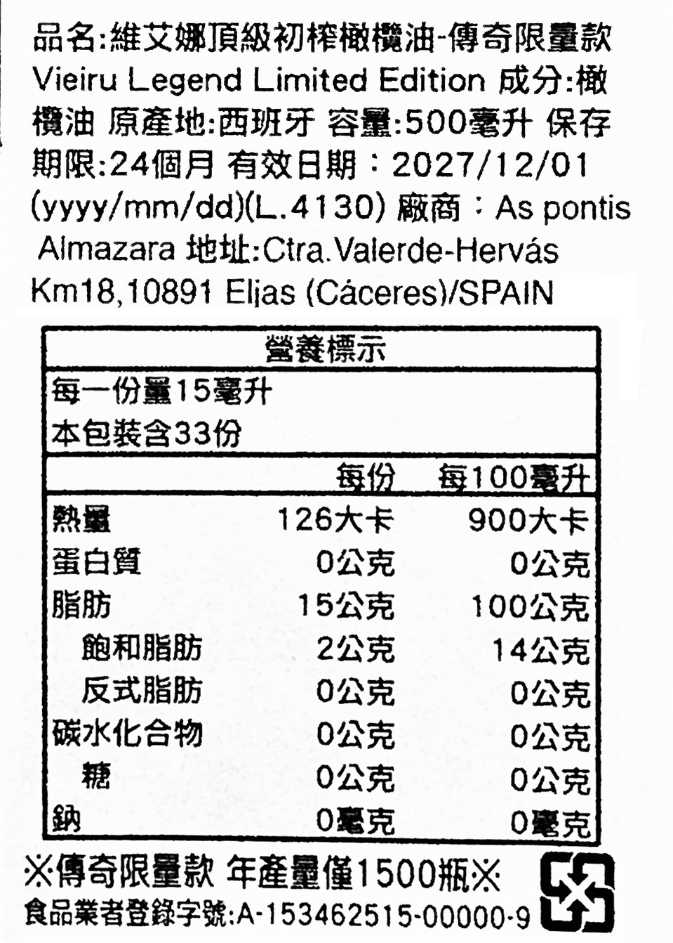 Vieiru Legend 橄欖油莊園・限量特別款