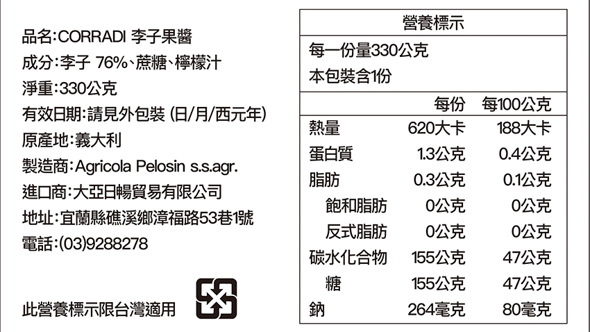 首頁美味商品油/醋/醬料醬料CORRADI 李子果醬|330g